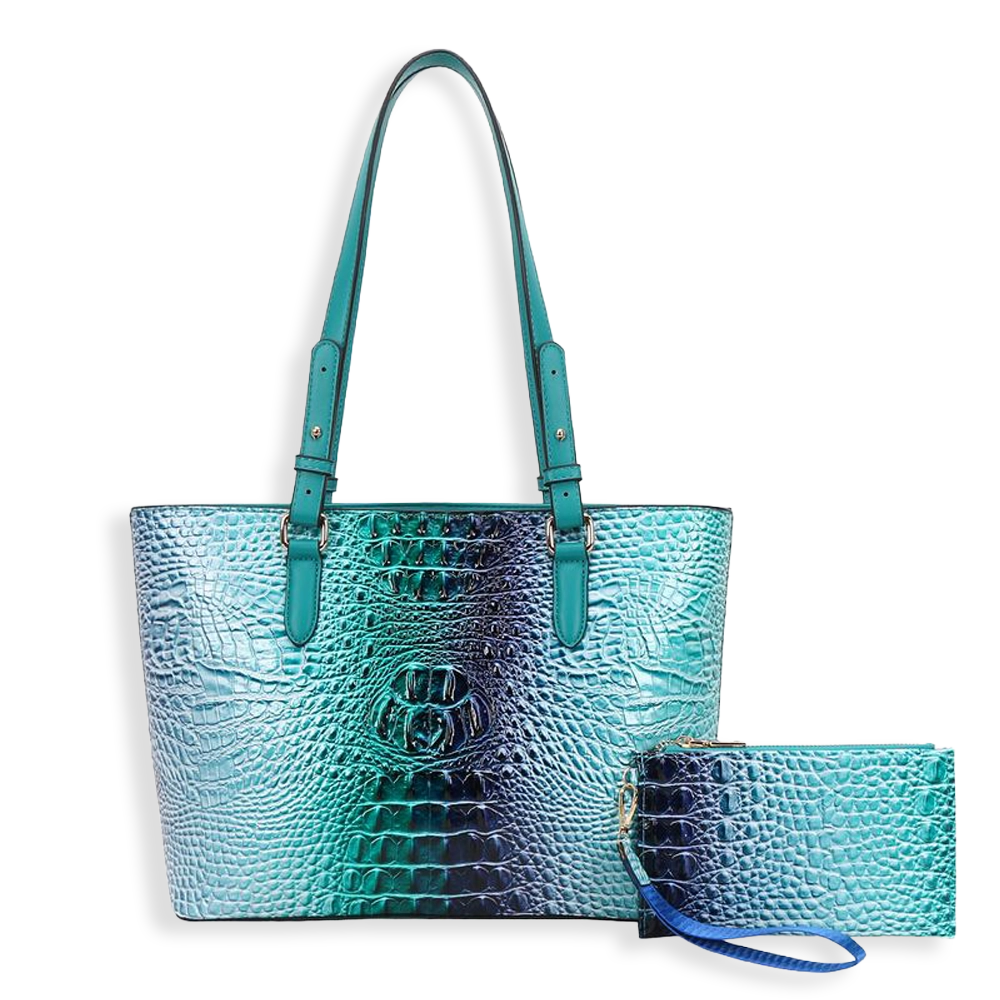 2pc 2 Tone Croc Tote with Pouch