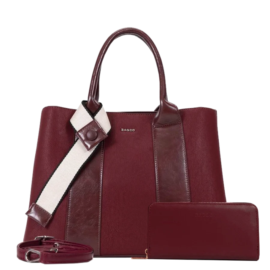 2pc Double Stripe Bag with Ribbon & Wallet