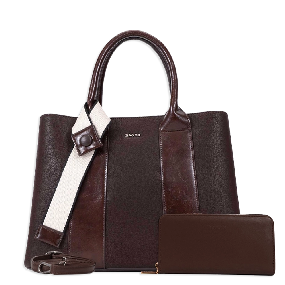 2pc Double Stripe Bag with Ribbon & Wallet