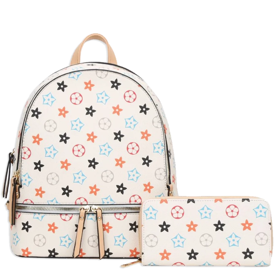 2pc Flowers Backpack with Wallet