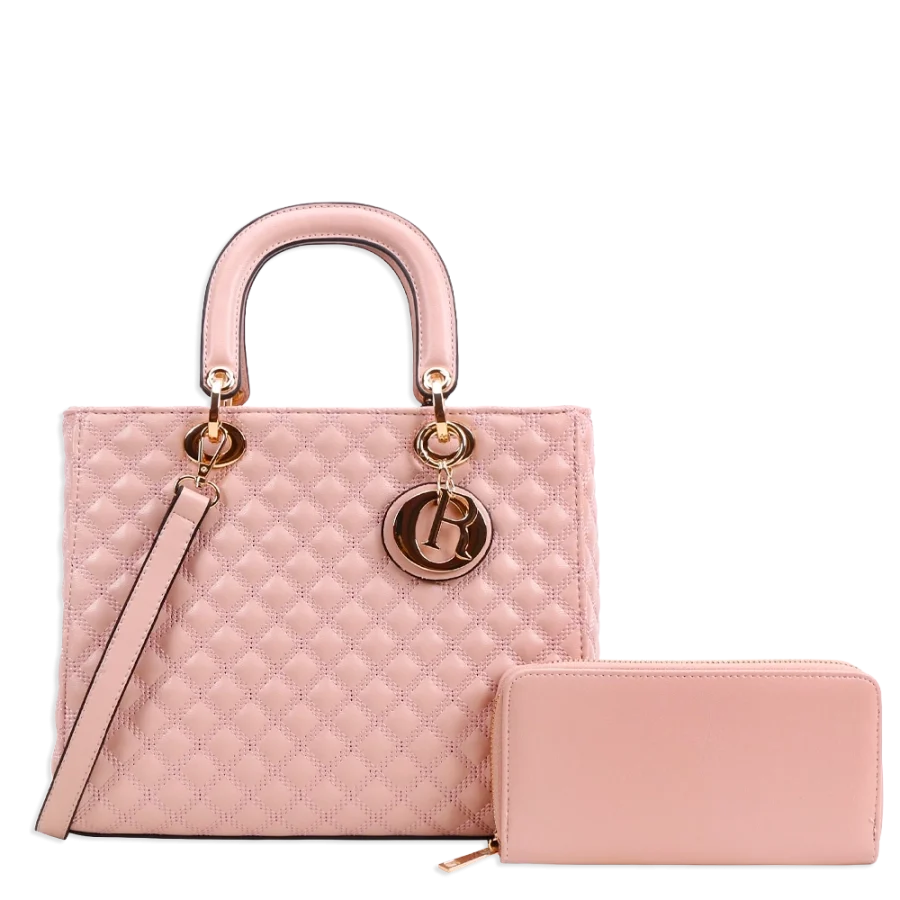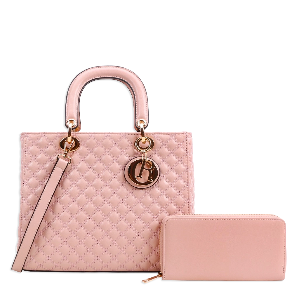 2pc Quilted Bag with Tag & Wallet