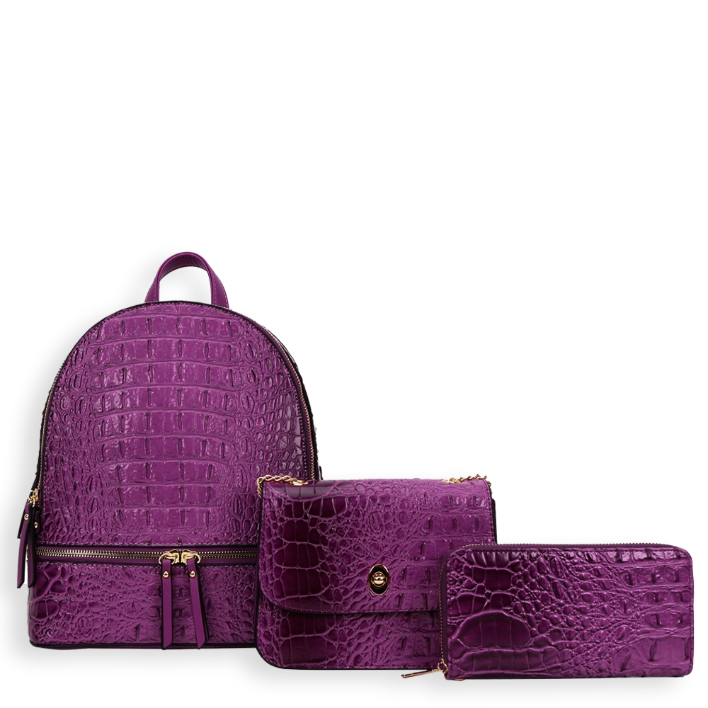 3pc Croc Backpack With Wallet & Crossbody