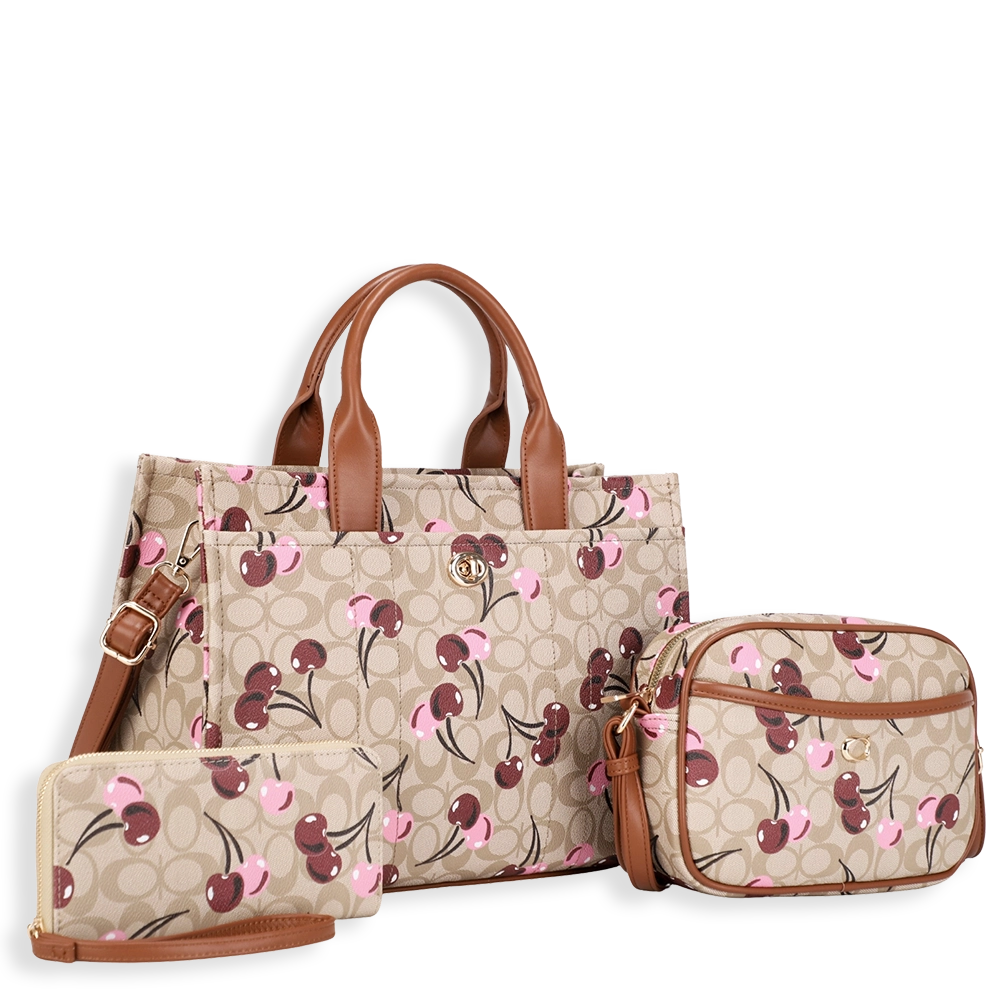 3pc Half Moon Cherry Tote with Wallet & Crossbody