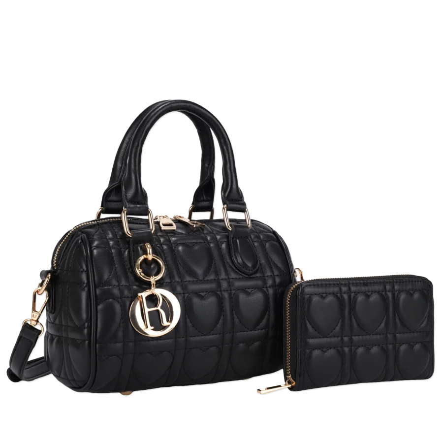 2pc Quilted Heart Crossbody with Wallet