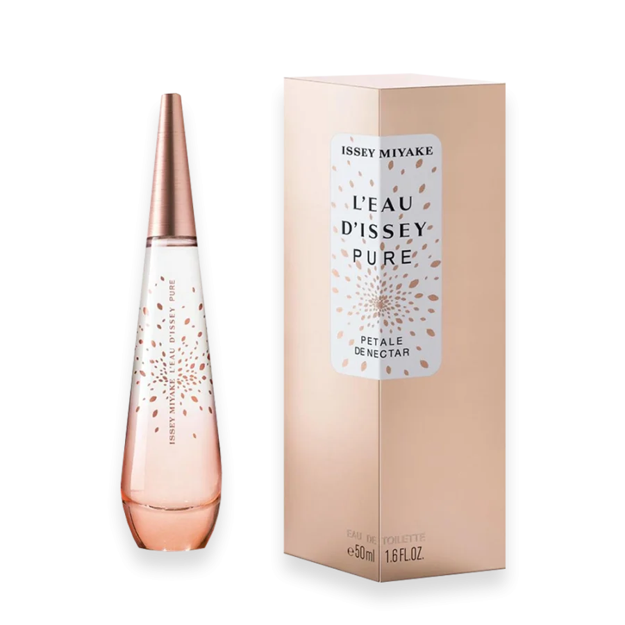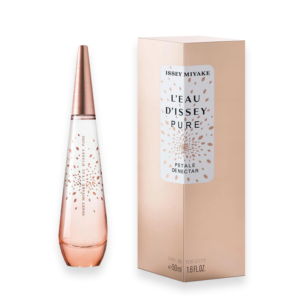 ssey Miyake launched L’Eau d’Issey Pure in the spring of 2016 as “the second chapter in L’Eau d’Issey’s perfume history.”  The new Eau de Toilette of this line is launching in early 2019 under the name L’Eau d’Issey Pure Petale de Nectar. With this scent, Issey Miyake wanted to discover a new moment of pure poetry: “Just a drop and nectar turns into a blossoming garden in a swirl of copper petals…”
